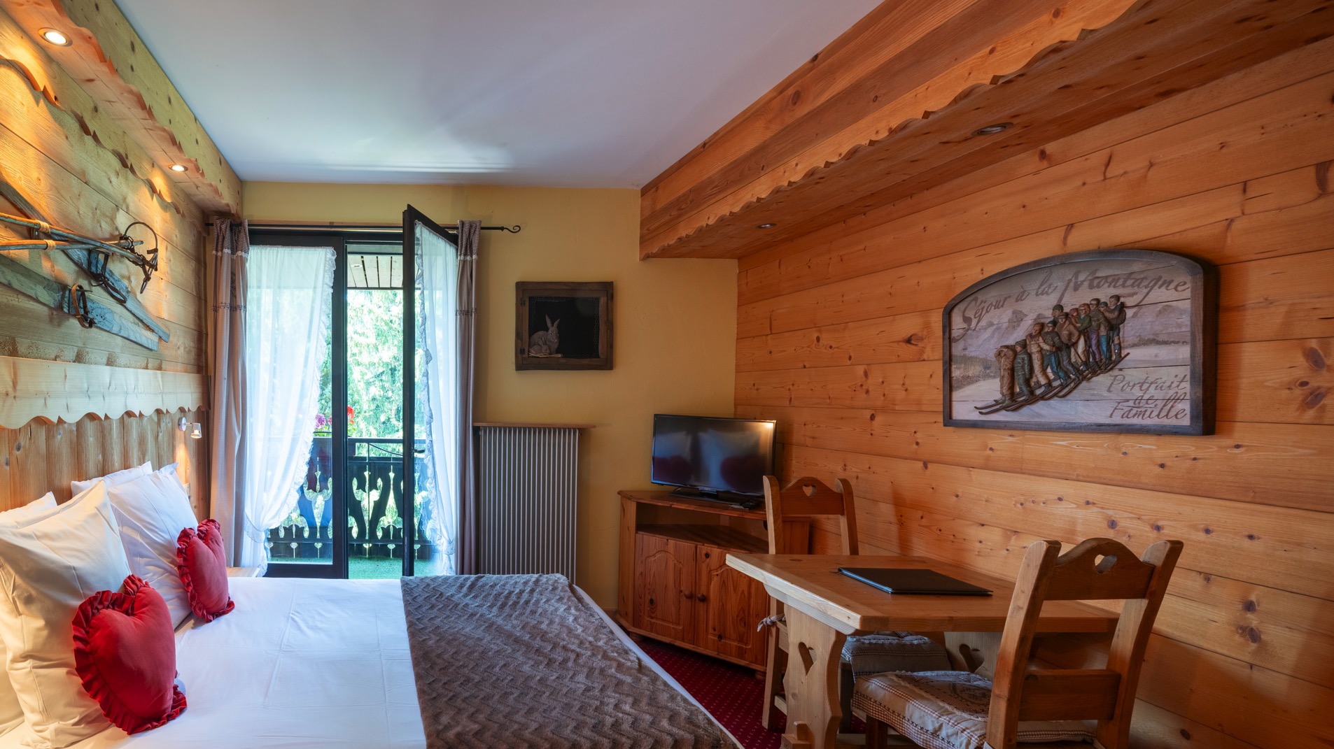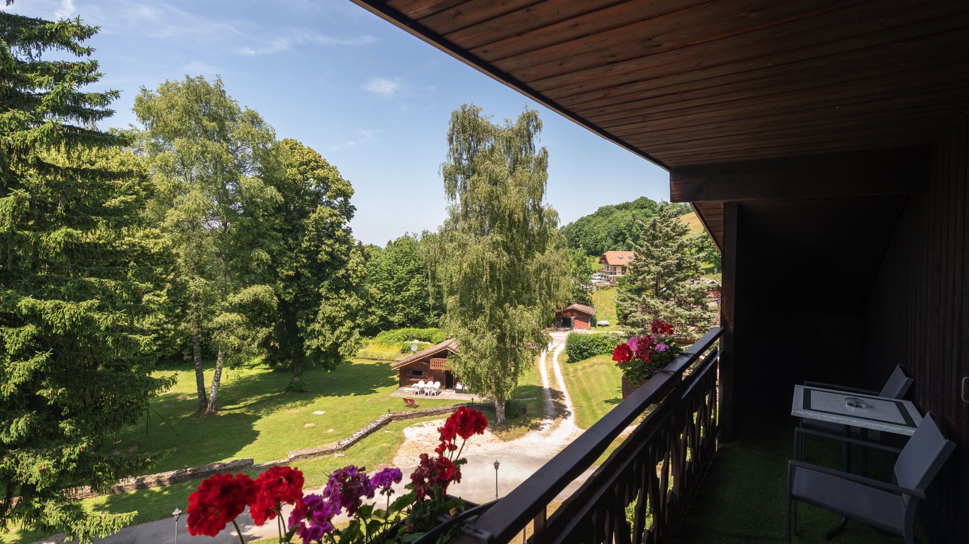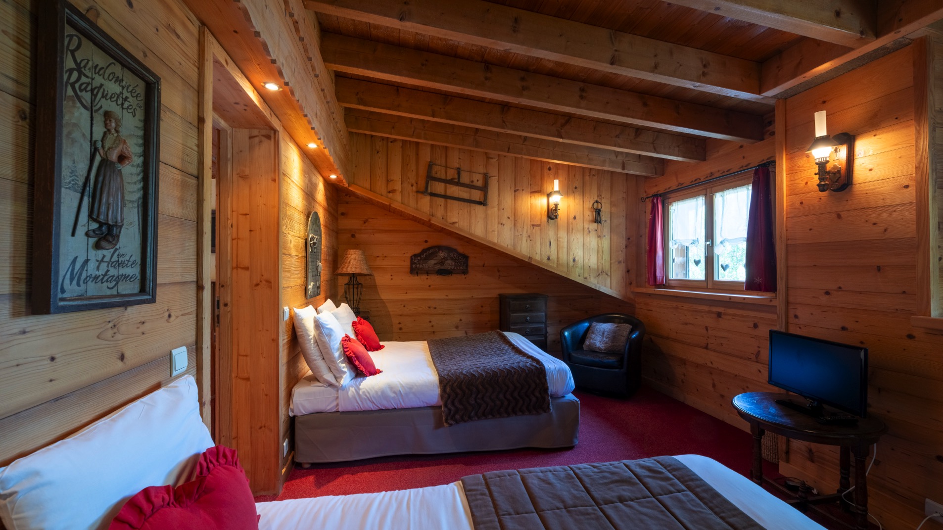 La chambre dispose d’un balcon avec vue sur notre domaine privé et le lac de la Beunaz, parfait pour se détendre et admirer le paysage.
