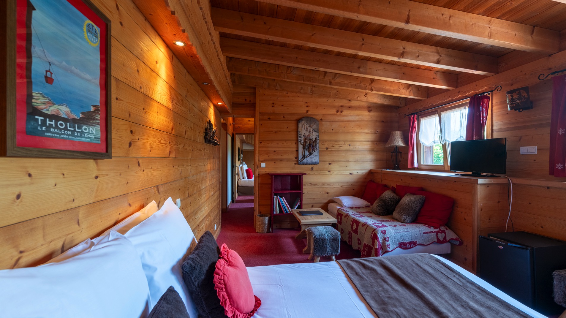 Notre Suite Familiale pour 6 personnes est idéale pour les grandes familles ou les séjours entre amis, offrant espace, confort et intimité pour partager des moments inoubliables entre lac et montagne.