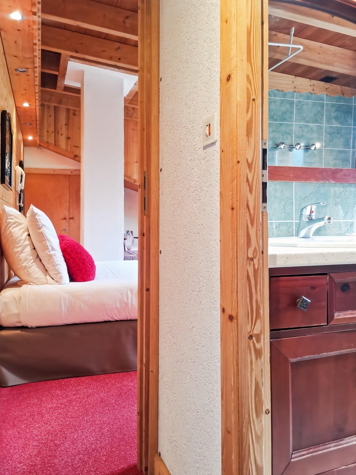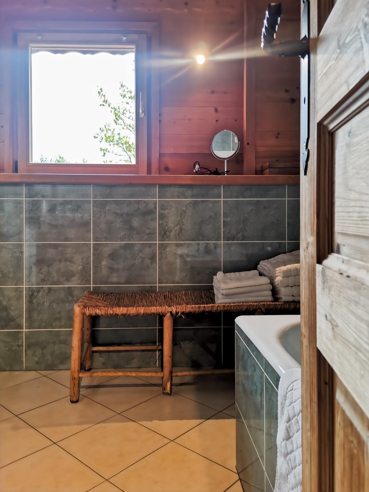 Les deux chambres sont reliées par un couloir avec un petit sas d’entrée, donnant accès à une salle de bain spacieuse avec baignoire, idéale pour se détendre après une journée d’activités, ainsi qu’à un toilette indépendant situé dans une petite pièce à côté pour plus de confort.